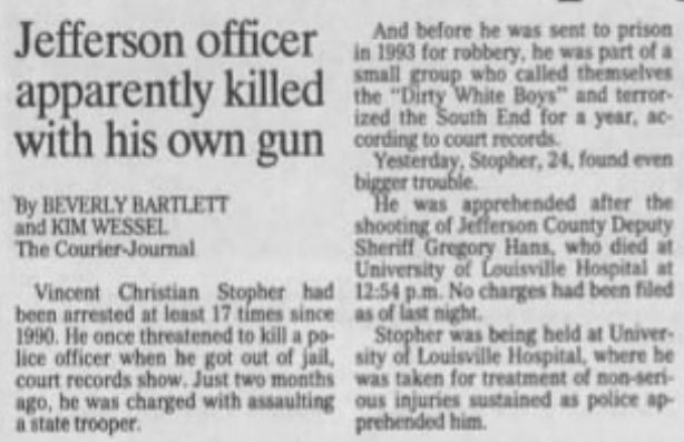 Deputy Hans was not dispatched on the call but was in the area and stopped at the scene prior to the arrival of Louisville police officers. The suspect ambushed Deputy Hans in his patrol car and was able to gain control of his weapon and shot him. The man then attempted to shoot a witness but the gun jammed. Deputy Hans was transported to a local hospital where he succumbed to his wounds. He was wearing his vest at the time of the incident.