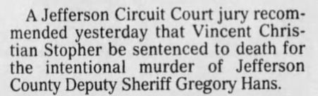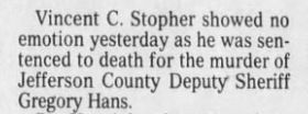 On February 14, 1998, the suspect was sentenced to death for Deputy Hans' murder.